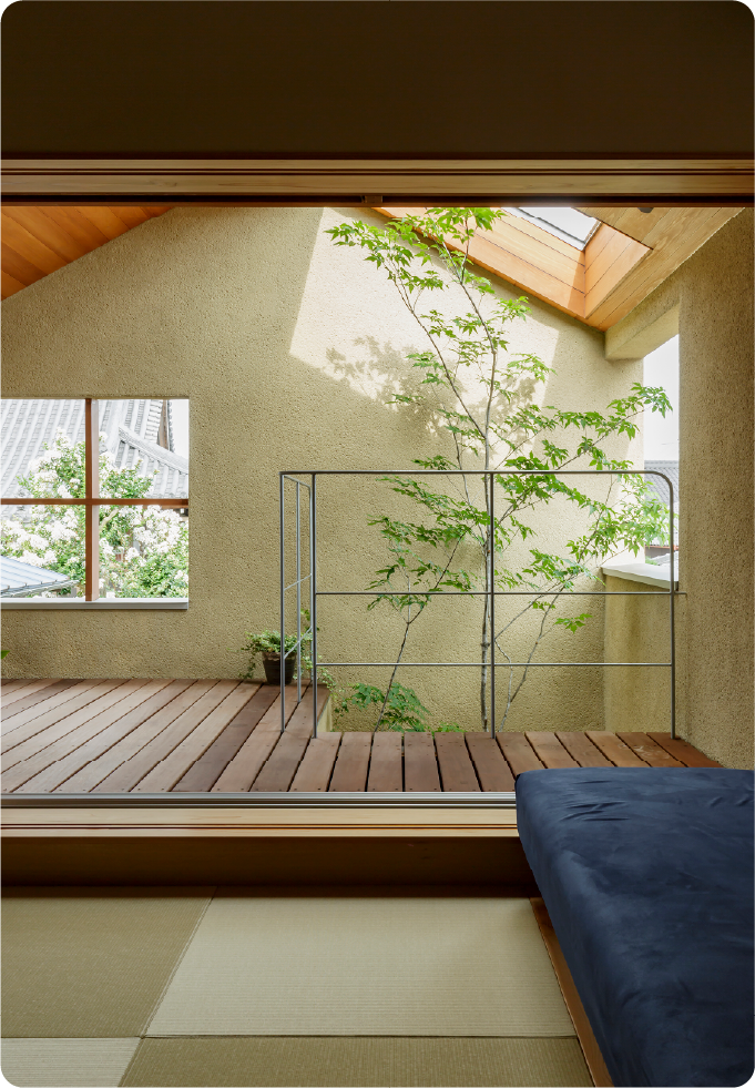 「難しければ難しいほど、やりがいを感じる」という職人との関係が、松彦の財産です。大工は木造軸組み工法を主体とし、手刻みによる技術を継承。地域の気候風土をよく知る大工の手で加工し、木の良さを最大限に引き出します。左官においては、芸術の域にまで高めた技術で空間に味わいと品格をもたらします。