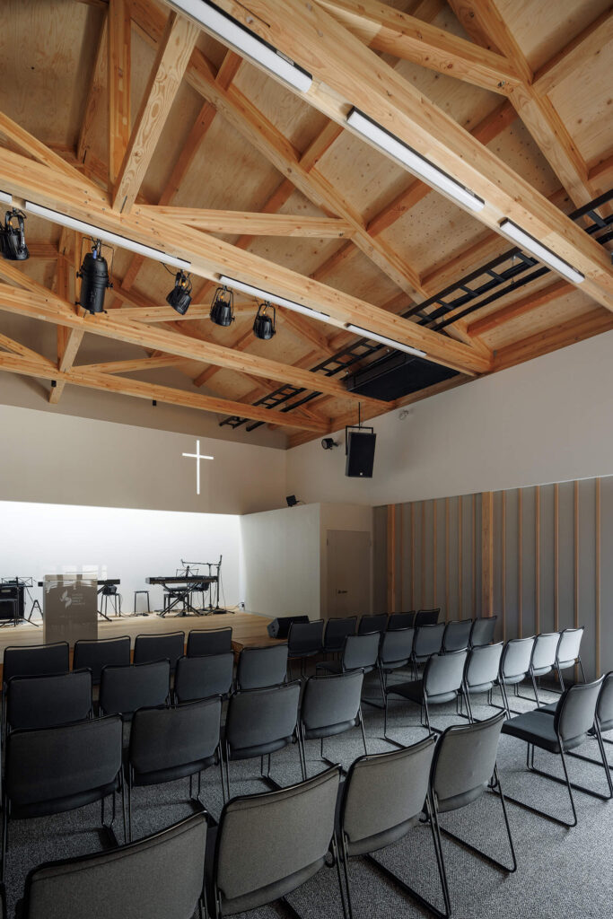 京都の伏見区にて教会の施工をさせていただきました。 木のぬくもりに包まれた、暖かみのある集いの場となりました。
